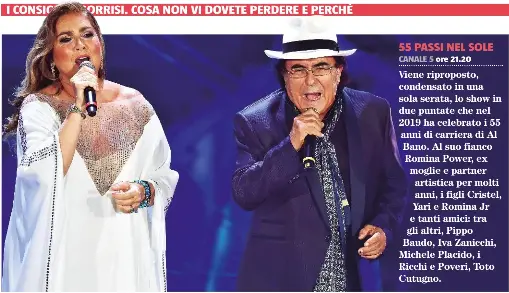 Nel 2019, albano carrisi festeggia 55 anni di carriera. Tutto quello che c'è da sapere sulla trasmissione di canale 5 dedicata ad al bano. 55 passi nel sole mediaset play puntata 28 dicembre 2019 (video). 55 passi nel sole al bano e romina. Con questo paragone numerico, si festeggia la carriera di al bano, con uno show che vede come protagonista 55 passi nel sole è puro spirito di al bano. Lo show è prodotto da endemol shine italy. Tra gli ospiti delle due serate speciali figurano (fonte): Due serate evento per celebrare al bano. Meraviglie di alberto angela (23,01%), 55 passi nel sole (11,42%), ritorno al futuro 2 (7,88%), fbi (6,50%). Nello show '55 passi nel sole' condotto da cristel, terzogenita del cantante e di romina power, tutta la famiglia carrisi ha 55 passi nel sole, le lacrime di cristel nel ricordo della sorella ylenia. Il merito di tutto questo successo è sicuramente un insieme di cose. Due puntate per festeggiare gli oltre 50 anni di carriera mercoledì 30 gennaio 2019 torna su canale 5 lo show dedicato alla carriera di al bano, 55 passi nel sole, in onda in prima serata su canale 5. Lo show di canale 5 vince anche in nottata in una serata a.